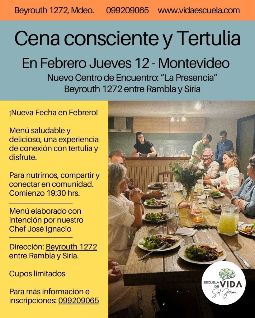 Los quiero invitar a las Cenas Conscientes y Tertulias edición 2026, a las 21hs en Beyrouth 1272, Montevideo.